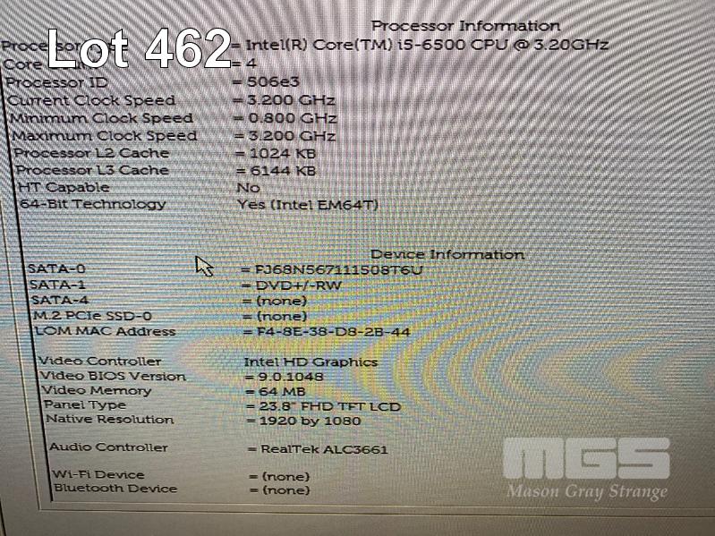 ALL-IN-ONE PC, DELL OPTIPLEX 7440, CORE i5 6500 (6TH GEN) @ 3.2GHz, 8GB DDR4 RAM, 256GB SSD, DVD-RW, INBUILT 23.8" FHD WIDESCREEN (1920x1080), INTEL HD VIDEO, WEBCAM, 8 x USB, WINDOWS 10 HOME INSTALLED, KEYBOARD & MOUSE S/N:5LLYSF2
