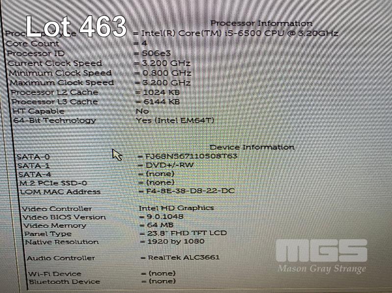 ALL-IN-ONE PC, DELL OPTIPLEX 7440, CORE i5 6500 (6TH GEN) @ 3.2GHz, 8GB DDR4 RAM, 256GB SSD, DVD-RW, INBUILT 23.8" FHD WIDESCREEN (1920x1080), INTEL HD VIDEO, WEBCAM, 8 x USB, WINDOWS 10 HOME INSTALLED, KEYBOARD & MOUSE S/N:5LHYSF2