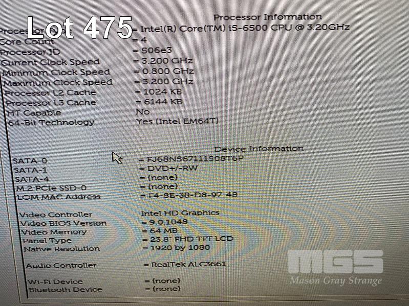 ALL-IN-ONE PC, DELL OPTIPLEX 7440, CORE i5 6500 (6TH GEN) @ 3.2GHz, 8GB DDR4 RAM, 256GB SSD, DVD-RW, INBUILT 23.8" FHD WIDESCREEN (1920x1080), INTEL HD VIDEO, WEBCAM, 8 x USB, WINDOWS 10 HOME INSTALLED, KEYBOARD & MOUSE S/N:5LMZSF2