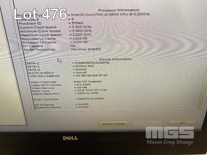 ALL-IN-ONE PC, DELL OPTIPLEX 7440, CORE i5 6500 (6TH GEN) @ 3.2GHz, 8GB DDR4 RAM, 256GB SSD, DVD-RW, INBUILT 23.8" FHD WIDESCREEN (1920x1080), INTEL HD VIDEO, WEBCAM, 8 x USB, WINDOWS 10 HOME INSTALLED, KEYBOARD & MOUSE S/N:5LP0TF2