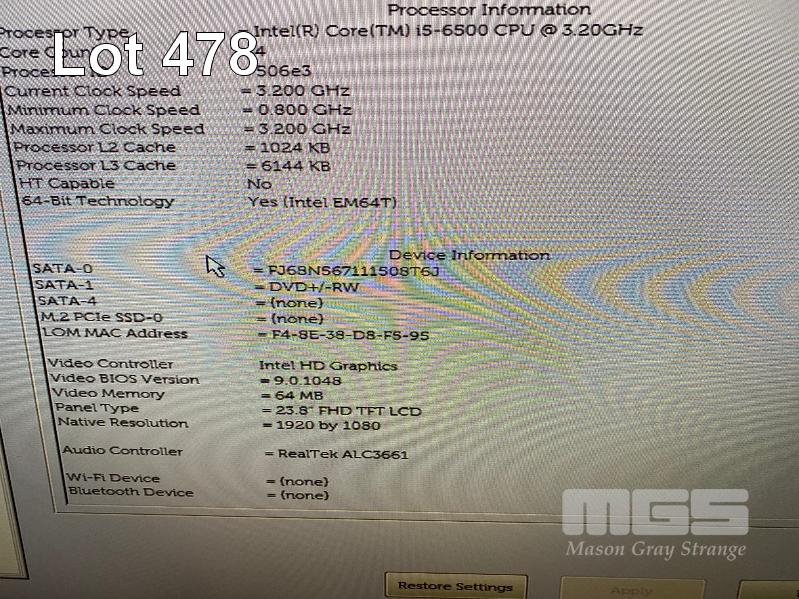 ALL-IN-ONE PC, DELL OPTIPLEX 7440, CORE i5 6500 (6TH GEN) @ 3.2GHz, 8GB DDR4 RAM, 256GB SSD, DVD-RW, INBUILT 23.8" FHD WIDESCREEN (1920x1080), INTEL HD VIDEO, WEBCAM, 8 x USB, WINDOWS 10 HOME INSTALLED, KEYBOARD & MOUSE (NOTE: SMALL SCRATCH ON SCREEN, MISSING DVD DRIVE COVER) S/N:5LL1TF2