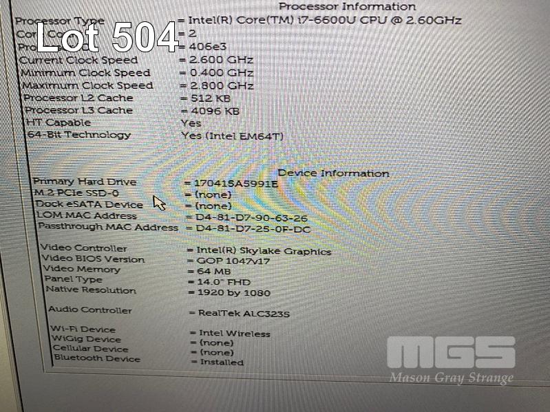 LAPTOP, DELL LATITUDE E7470, CORE i7 6600U (6TH GEN) @ 2.6GHz, 16GB DDR4 RAM, 512GB M.2 SSD, 14" WIDESCREEN (1920x1080), INTEL SKYLAKE GRAPHICS, Wi-Fi, BLUETOOTH, WINDOWS 10 HOME INSTALLED, DOCKING STATION & POWER SUPPLY (NOTE: NO BATTERY) S/N:D25KXF2