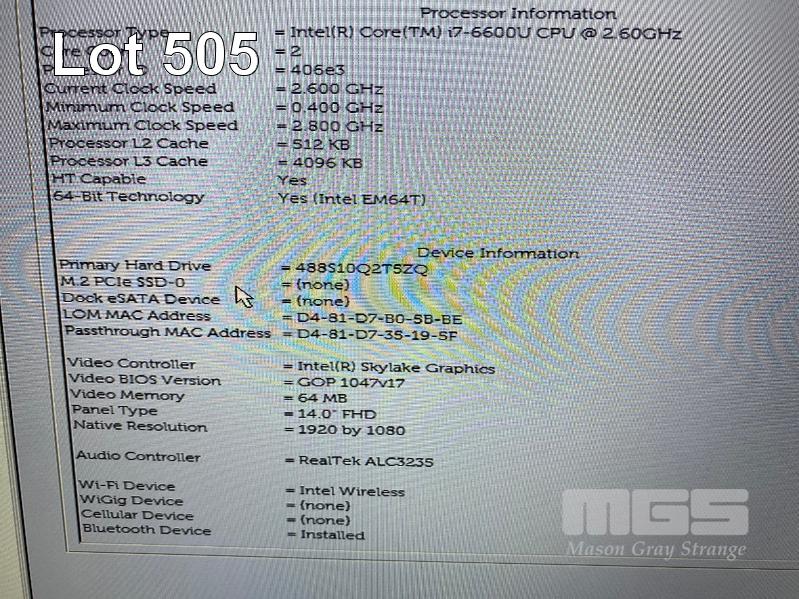 LAPTOP, DELL LATITUDE E7470, CORE i7 6600U (6TH GEN) @ 2.6GHz, 16GB DDR4 RAM, 512GB M.2 SSD, 14" WIDESCREEN (1920x1080), INTEL SKYLAKE GRAPHICS, Wi-Fi, BLUETOOTH, WINDOWS 10 HOME INSTALLED, DOCKING STATION & POWER SUPPLY (NOTE: SWOLLEN BATTERY, MARKS ON SCREEN) S/N:F9YX1G2