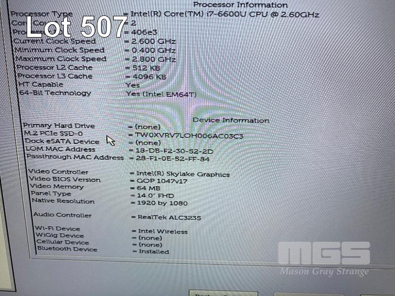 LAPTOP, DELL LATITUDE E7470, CORE i7 6600U (6TH GEN) @ 2.6GHz, 8GB DDR4 RAM, 256GB M.2 SSD, 14" WIDESCREEN (1920x1080), INTEL SKYLAKE GRAPHICS, Wi-Fi, BLUETOOTH, WINDOWS 10 PRO INSTALLED & POWER SUPPLY (NOTE: NO BATTERY) S/N:7WL2CG2