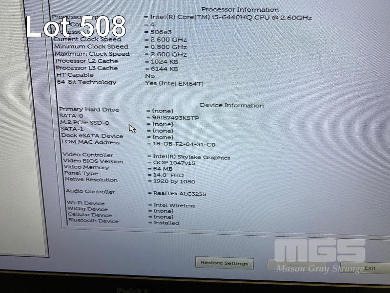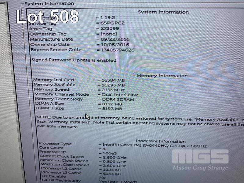LAPTOP, DELL LATITUDE E5470, CORE i5 6440HQ (6TH GEN) @ 2.6GHz, 16GB DDR4 RAM, 512GB M.2 SSD, 14" WIDESCREEN (1920x1080), INTEL SKYLAKE GRAPHICS, Wi-Fi, BLUETOOTH, WINDOWS 10 HOME INSTALLED, DOCKING STATION & POWER SUPPLY (NOTE: SCREEN HINGES LOOSE) S/N:65PGPC2