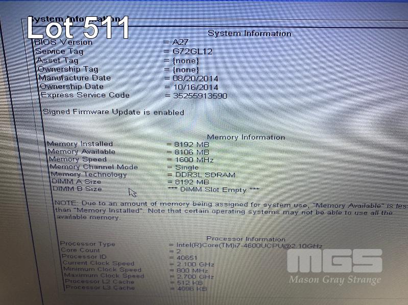 LAPTOP, DELL LATITUDE E7240, CORE i7 4600U (4TH GEN) @ 2.1GHz, 8GB DDR3 RAM, 256GB SSD, 12.5" WIDESCREEN (1366x768), INTEL HD VIDEO, Wi-Fi, BLUETOOTH, WINDOWS 10 PRO INSTALLED & POWER SUPPLY S/N:G72GL12