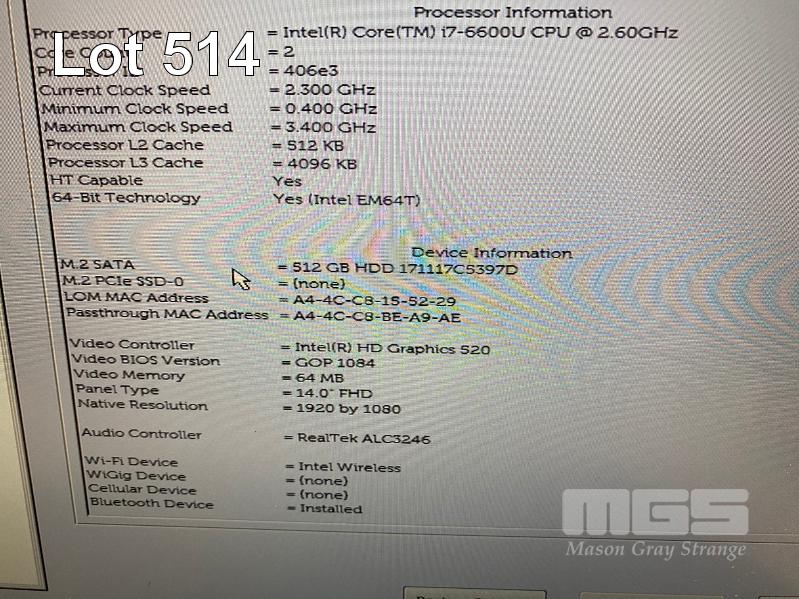 LAPTOP, DELL LATITUDE 7480, CORE i7 6600U (6TH GEN) @ 2.6GHz, 16GB DDR4 RAM, 512GB M.2 SSD, 14" WIDESCREEN (1920x1080), INTEL HD GRAPHICS 520, Wi-Fi, BLUETOOTH, WINDOWS 10 HOME INSTALLED & POWER SUPPLY (NOTE: SWOLLEN BATTERY) S/N:49YM9H2