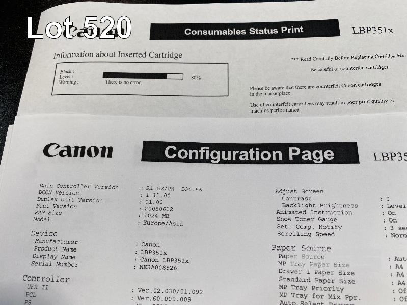 PRINTER, CANON imageCLASS LBP351x LASER, USB, NETWORK, 98,040 PAGES (TEST PAGE ATTACHED) S/N:NERA008926
