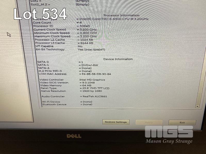 ALL-IN-ONE PC, DELL OPTIPLEX 7440, CORE i5 6500 (6TH GEN) @ 3.2GHz, 8GB DDR4 RAM, 256GB SSD, DVD-RW, INBUILT 23.8" FHD WIDESCREEN (NO KEYBOARD, NO MOUSE) (NOTE: SCRATCH ON SCREEN, HARD DRIVE FAULTY) S/N:9HYXKG2