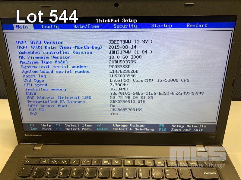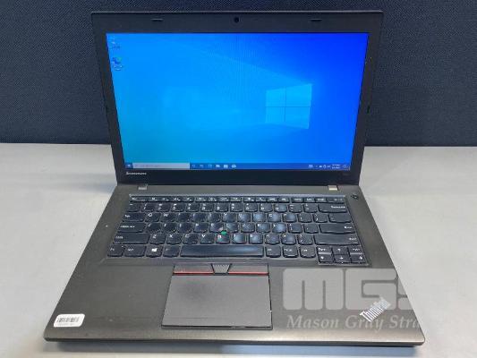 LAPTOP, LENOVO THINKPAD T450, TYPE 20BU, CORE i5 5300U (5TH GEN) @ 2.3GHz, 16GB DDR3 RAM, 250GB SSD, 14" WIDESCREEN (1366x768), INTEL HD VIDEO, Wi-Fi, BLUETOOTH, WINDOWS 10 PRO INSTALLED & POWER SUPPLY (NOTE: NOISY, SCREEN BLEMISHES, SCRATCH LINE & MARKS ON SCREEN) S/N:PC0B3SSP