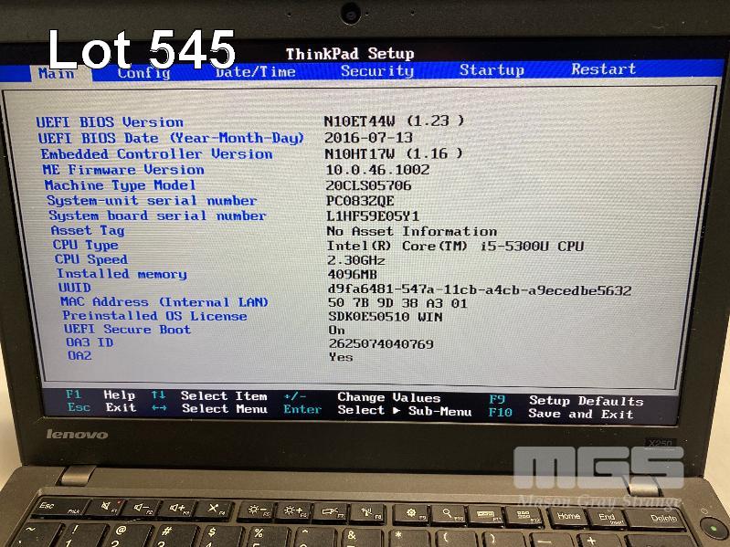 LAPTOP, LENOVO THINKPAD X250, TYPE 20CL, CORE i5 5300U (5TH GEN) @ 2.3GHz, 4GB DDR3 RAM, 500GB SATA HDD, 12.5" WIDESCREEN (1366x768), INTEL HD VIDEO, Wi-Fi, BLUETOOTH, WINDOWS 10 PRO INSTALLED & POWER SUPPLY (NOTE: KEYBOARD ISSUES - SOME KEYS NOT WORKING, CRACK LINE ON SCREEN FRAME) S/N:PC083ZQE