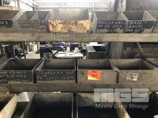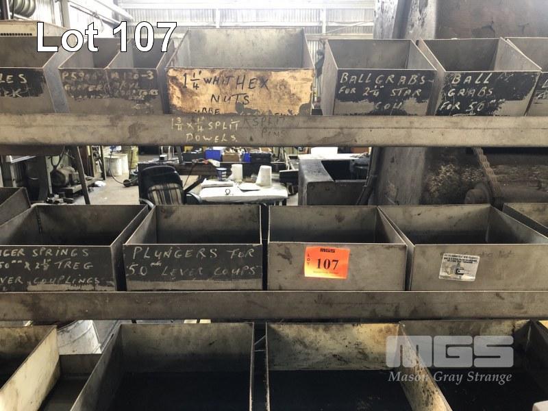 OLD SCHOOL TIMBER WORKSHOP BENCH, 2800 x 900mm & 24 x STEEL PARTS BINS