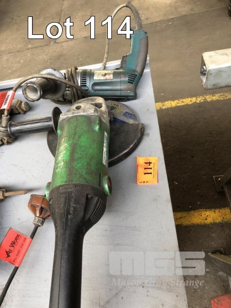ANGLE GRINDER, HITACHI, 9", 240V & MAKITA HAND DRILL, 13mm REVERSIBLE
