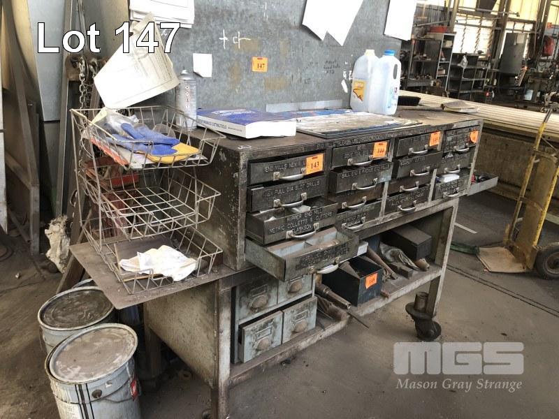 15 DRAWER HEAVY DUTY TOOL STORAGE UNIT ON BENCH, MOBILE