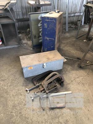2 x TOOL BOX, 5 x LARGE G-CLAMPS, UP TO 12" & 1 x LARGE F-CLAMP, 15"