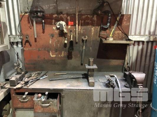 WELDERS BENCH WITH 6" VICE, PLATE TOP, 160 x 600mm, 3 x DRAWER, 1 x DOOR