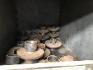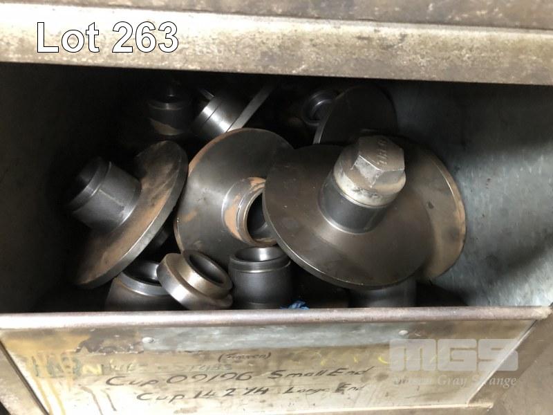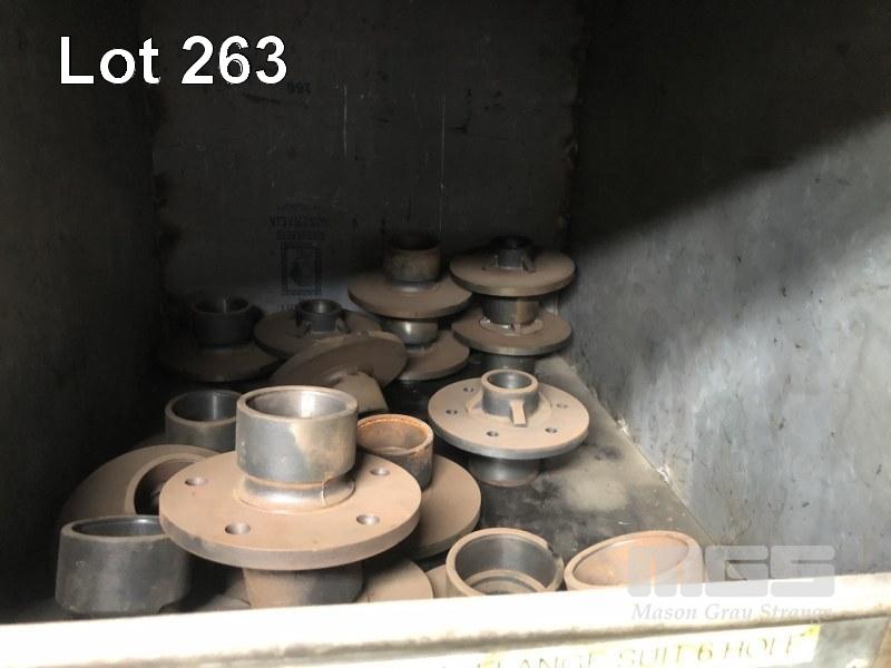 4 x STEEL PARTS BINS, 100 x 700 x 600mm & CONTENTS TRAILER HUBS & DISCS