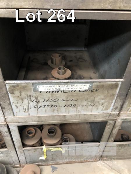 4 x STEEL PARTS BINS, 100 x 700 x 600mm & CONTENTS TRAILER HUBS