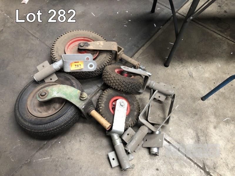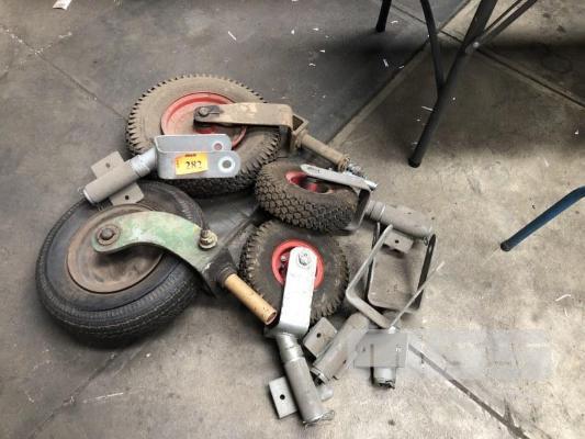 4 x PIVOT TYPE TRAILER WHEELS & SPARE BRACKET