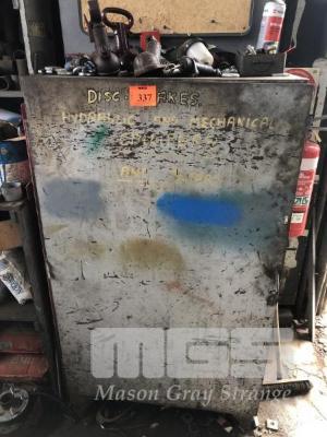 STEEL STOCK CUPBOARD & CONTENTS ASSORTED TRAILER HUBS & BRAKE COMPONENTS