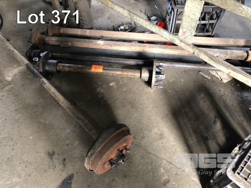 6 x TRAILER AXLES WITH HUBS (1 WITH BRAKE DRUMS)