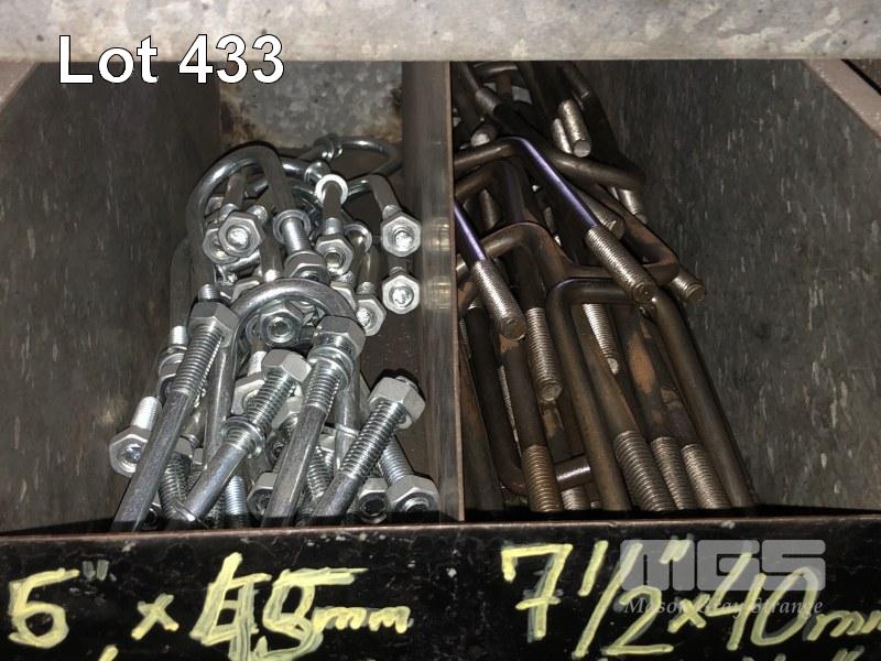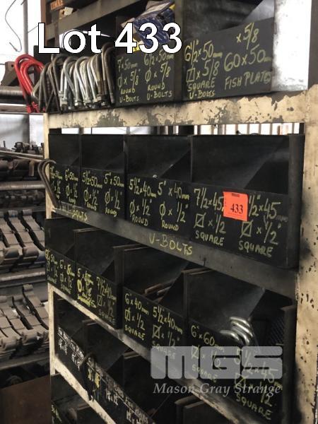 LARGE QUANTITY U-BOLTS & PLATES, HEX HUB & BEARINGS, WITH RACK, 2000 x 1320 x 620mm