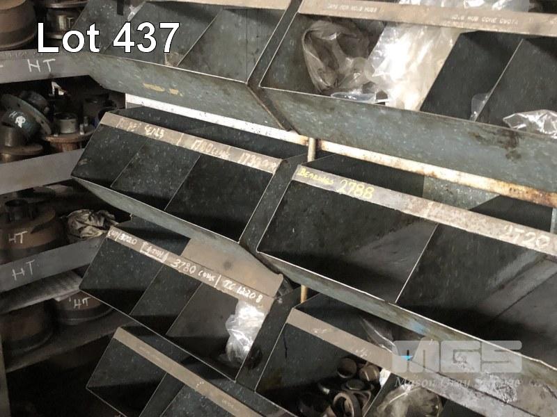 CONTENTS OF DOUBLE SIDED RACK & STORAGE BINS INC VARIOUS HUBS, BRAKE DRUMS & TRAILER PARTS, RACK & BINS INCLUDED, RACK: 2320 x 630 x 1800mm 8 x BINS & RACK: 1200 x 600 x1500mm
