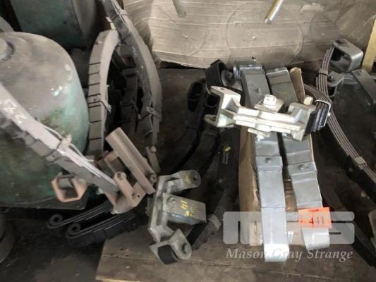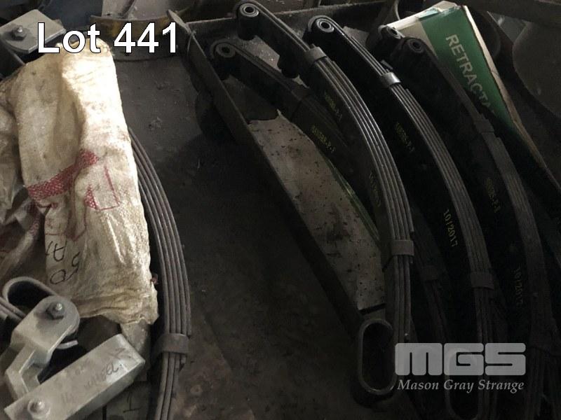 18 x LEAF SPRINGS IN PAIRS, 3 x NARROW TRAILER AXLES, 4 TIER MOBILE TROLLEY