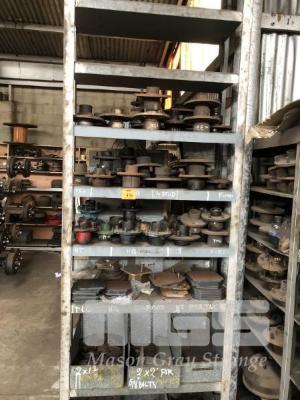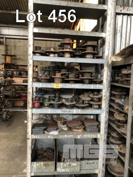 54 (APPROX) x 5 & 6 STUD TRAILER HUBS, 3 x SHELVES &