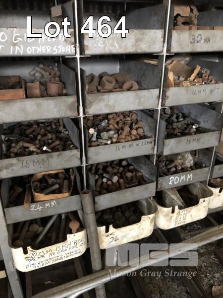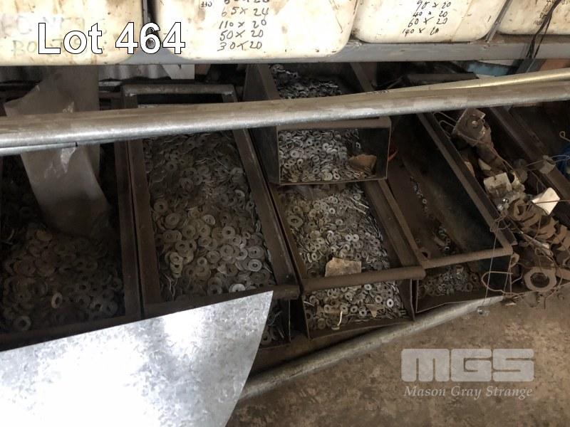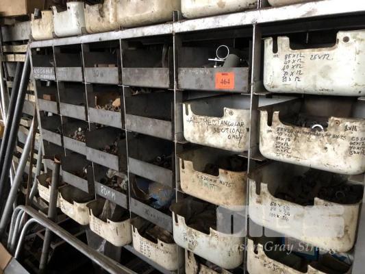 RACK & CONTENTS INC 36 BAYS & CONTENTS UNDER SHELF, MASSIVE QUANTITY FASTENERS, INC WASHERS, NUTS,BOLTS, LARGE DIAMETER CASTLE NUTS,