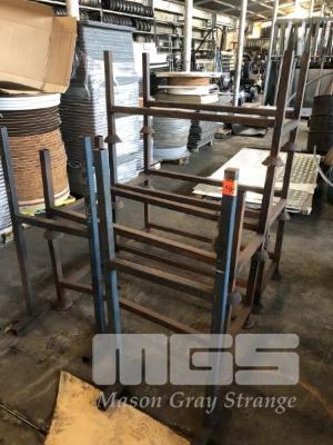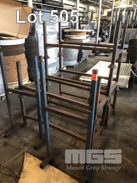 5 x STACKABLE STEEL STOCK RACKS & 2 x WORK STANDS