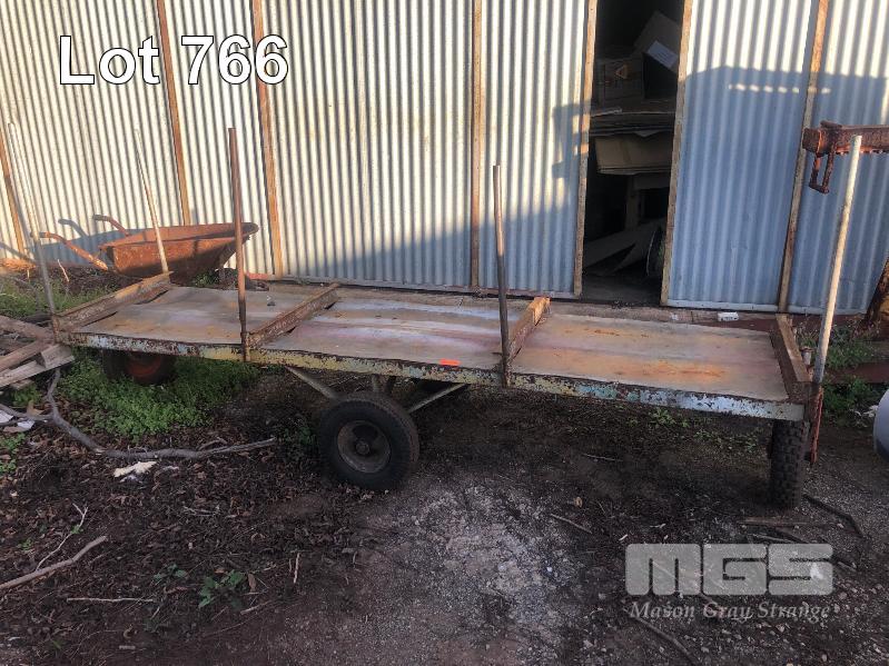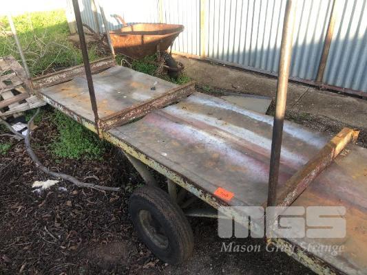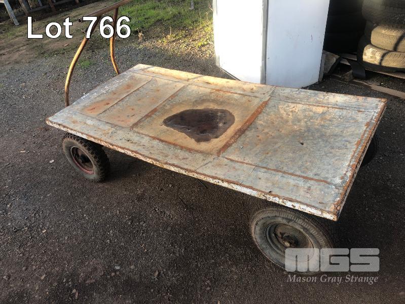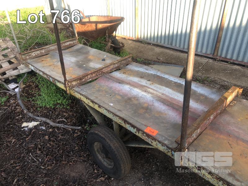 CENTER PIVOT STOCK TROLLEY, PNUEMATIC WHEELS, 3m LONG, PLUS FLAT BED TROLLEY 1800 x 900mm
