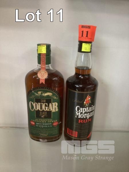 COUGAR BOURBON WHISKY, 750ml & CAPTAIN MORGAN RUM, 750ml