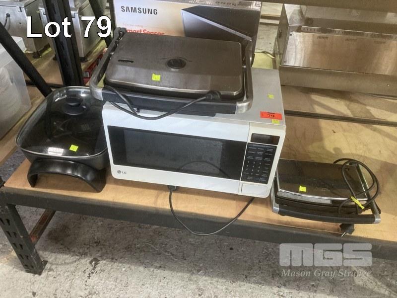 MICROWAVE OVEN, 2 x SANDWICH PRESSES & ELECTRIC FRYPAN