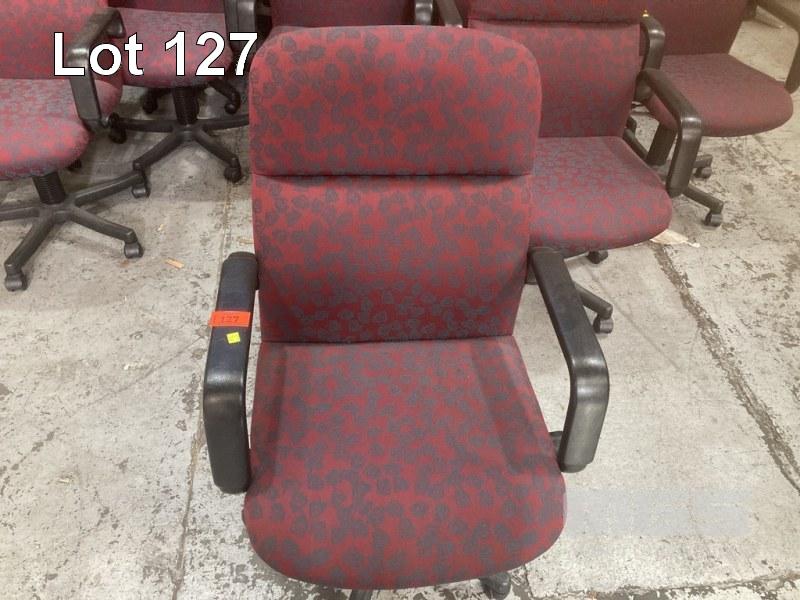 8 x GAS LIFT ARM CHAIRS, MAROON PATTERN FABRIC