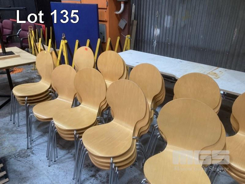 36 x CAFE CHAIRS, ONE PIECE MOULDED TIMBER, CHROME FRAME & 6 ASST TABLES
