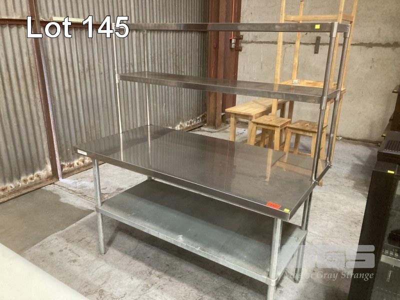 STAINLESS STEEL PREP BENCH, 152 x 76cm WITH 2 TIER OVERSHELF