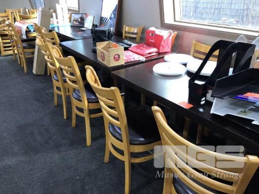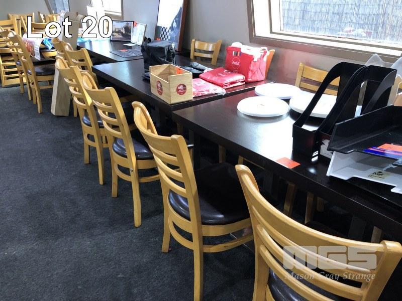 4 x DINING TABLES, ROSEWOOD TIMBER LAMINATE, 1200 x 800 x 50mm TOP, CHROME STEEL, TWIN PEDESTAL PLINTH BASE
