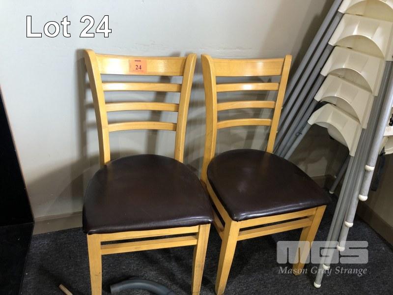 16 x DINING CHAIRS, BENTWOOD FRAME, NATURAL TIMBER FINISH WITH BROWN VINYL SEAT