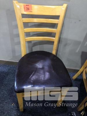16 x DINING CHAIRS, BENTWOOD FRAME, NATURAL TIMBER FINISH WITH BROWN VINYL SEAT