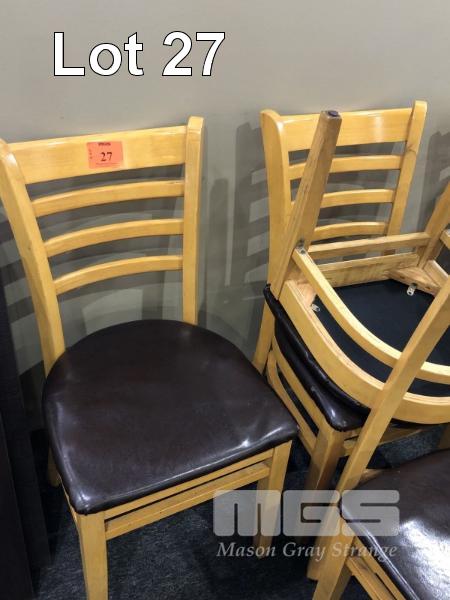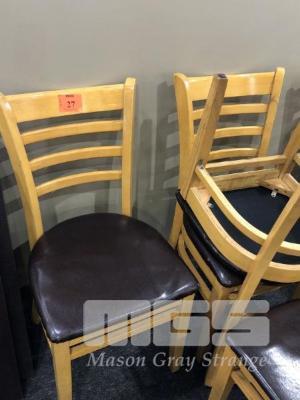 16 x DINING CHAIRS, BENTWOOD FRAME, NATURAL TIMBER FINISH WITH BROWN VINYL SEAT