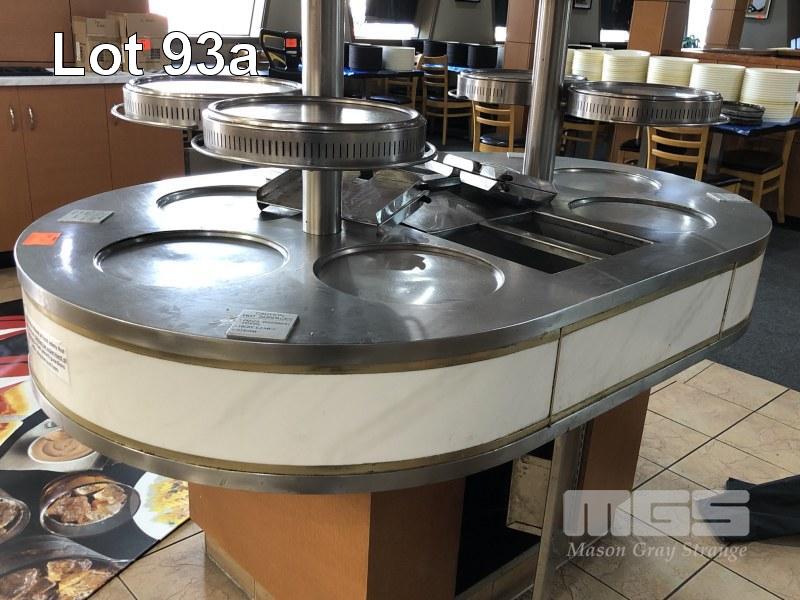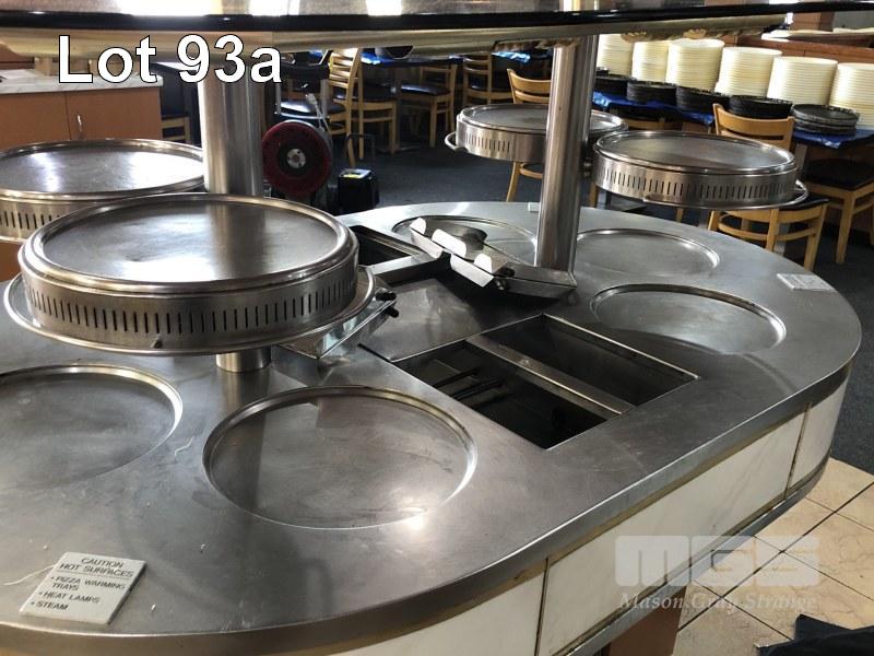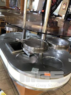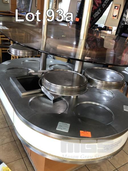 HOT FOOD SERVE ISLAND, 6 PIZZA TRAY POSITION, 4 x BAIN MARIES, SHEEZE GUARD, SELF CONTAINED, 1800 x 1100mm