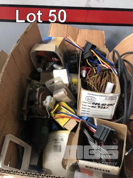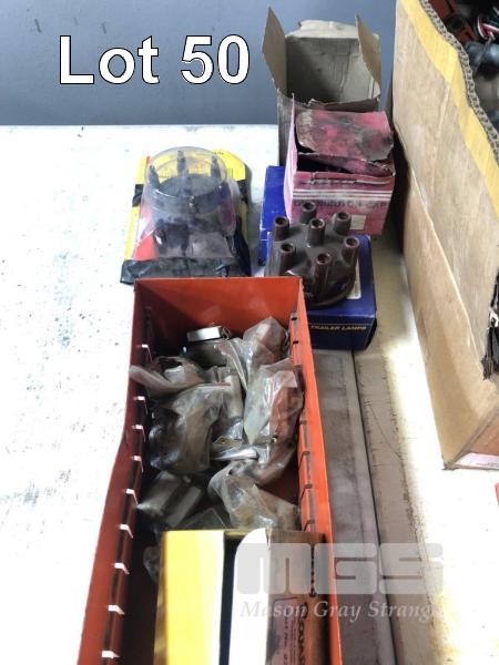 ASSORTED DISTRIBUTOR CAPS, WIRING, LOOM COMPONENTS, TRAILER TAIL LIGHTS, WIPER MOTOR, ETC