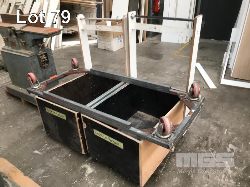 4 WHEEL TROLLEY, FABRICATED STEEL FRAME & 2 X SPARE PARTS TROLLIES, 4 WHEEL