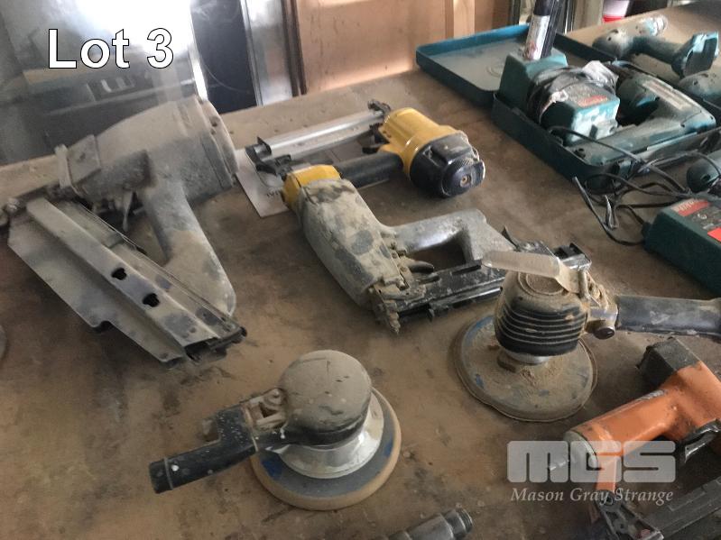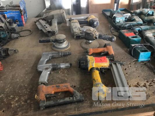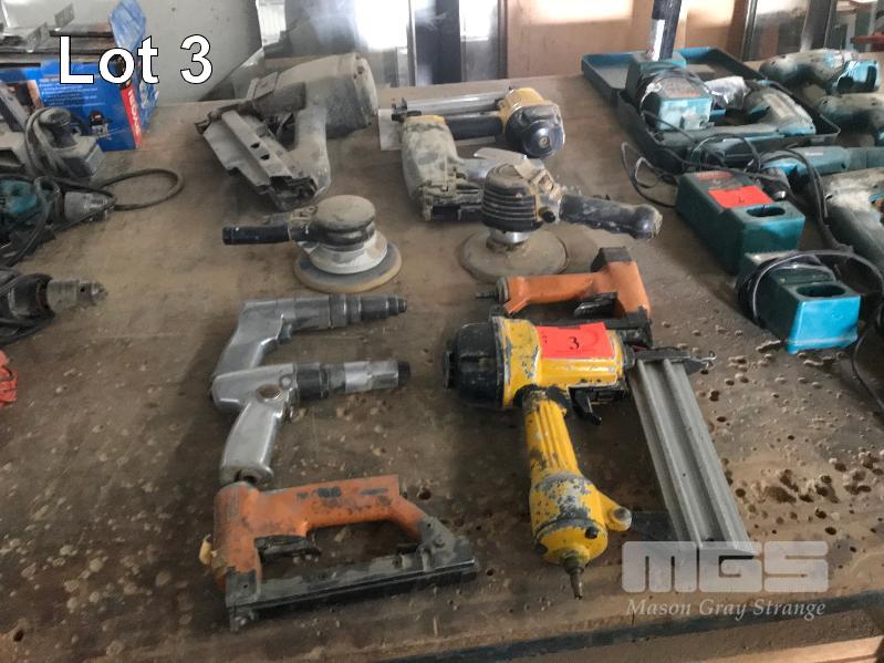 8 x ASSORTED PNEUMATIC STAPLE GUNS & 2 x PNEUMATIC SANDERS