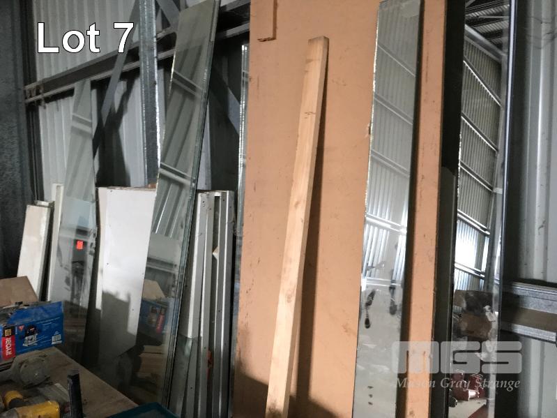 ASSORTED SHEETS MIRRORED GLASS & TIMBER BENCH TOPS