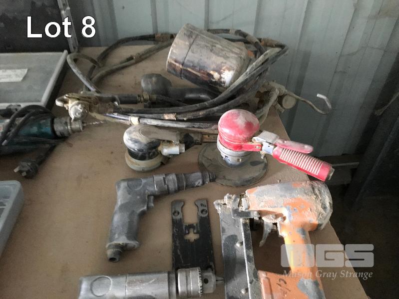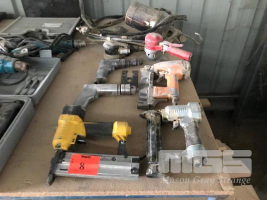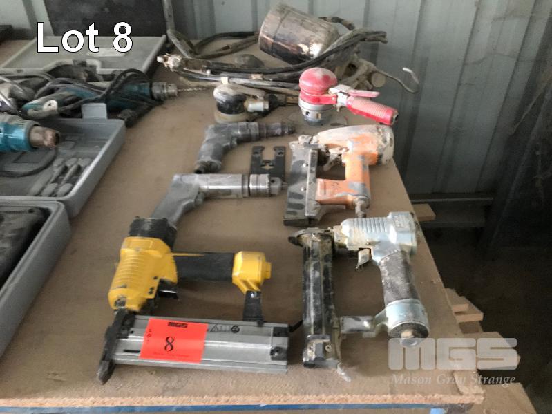 7 x ASSORTED PNEUMATIC STAPLE GUNS & 2 x PNEUMATIC SANDERS