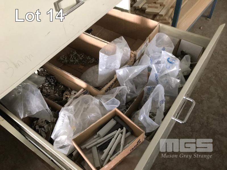 VOGUE STEEL STORAGE CABINET, 1200 x 750 x 750mm, 4 DRAWER & CONTENTS HARDWARE, HINGES, HANDLES & FITTINGS