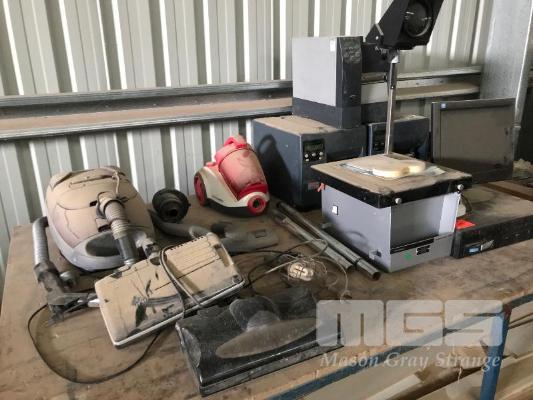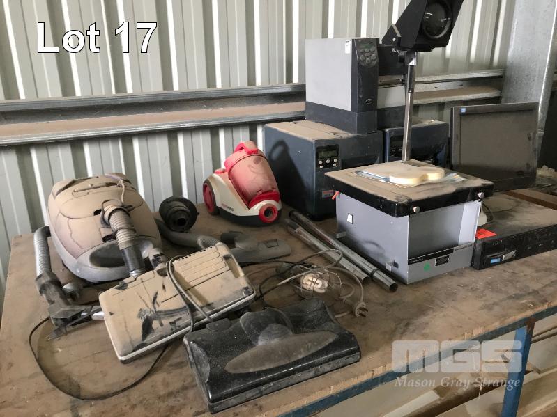 3 x ZEBRA LABEL PRINTERS, HANIMEX CLASS MASTER PROJECTOR, NESS CCTV, HDD & 2 x VACUUM CLEANERS