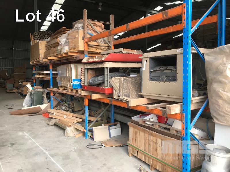 3 x BAYS PALLET RACKING & CONTENTS INC VACUUM PUMP, EVAPORATIVE AIR CONDITIONERS, TIMBER, ETC